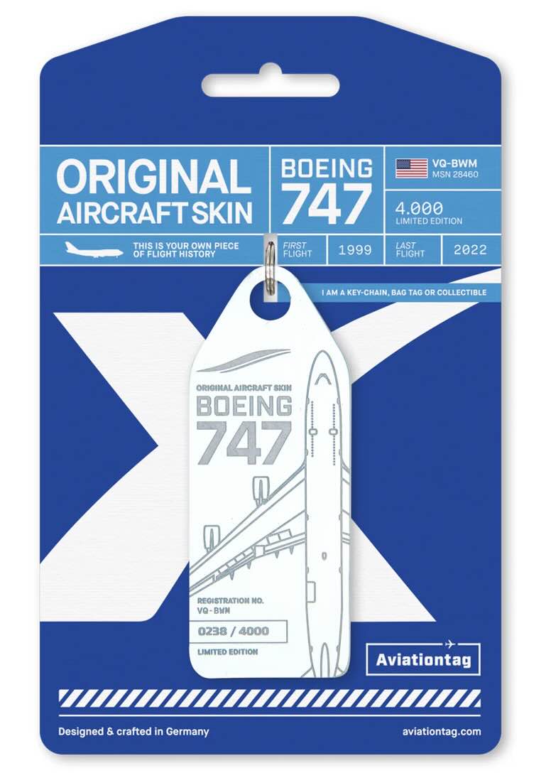Aviationtag JetOneX Boeing 747 VQ-BWM (White) In Stock